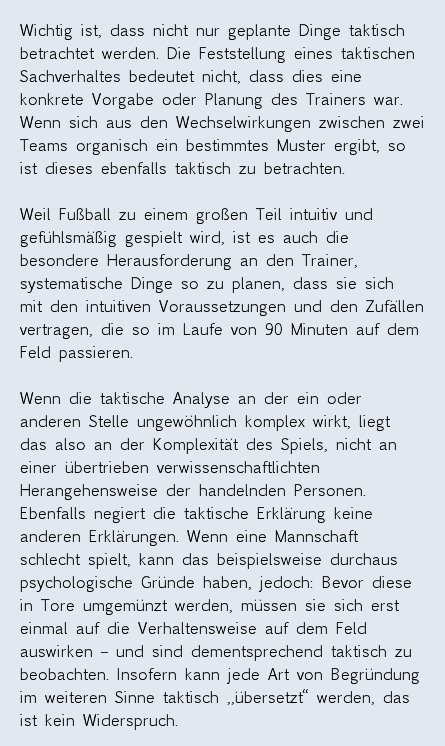 „Aber es kann doch nicht jede Bewegung geplant sein. Was nützt es dann, so detailliert zu analysieren? Suggeriert mir die Taktikanalyse die Erklärung des nicht Erklärbaren?“